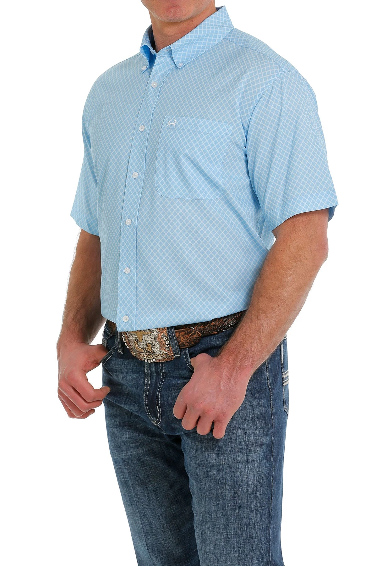 Cinch Men’s Light Blue Diamond Print Short Sleeve ArenaFlex Shirt