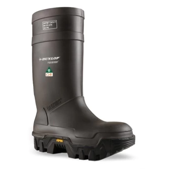 This Dunlop Purofort style was formulated for the oil, gas and mining industries. This style includes a purpose-built Vibram Fire & Ice Sole. Features include: