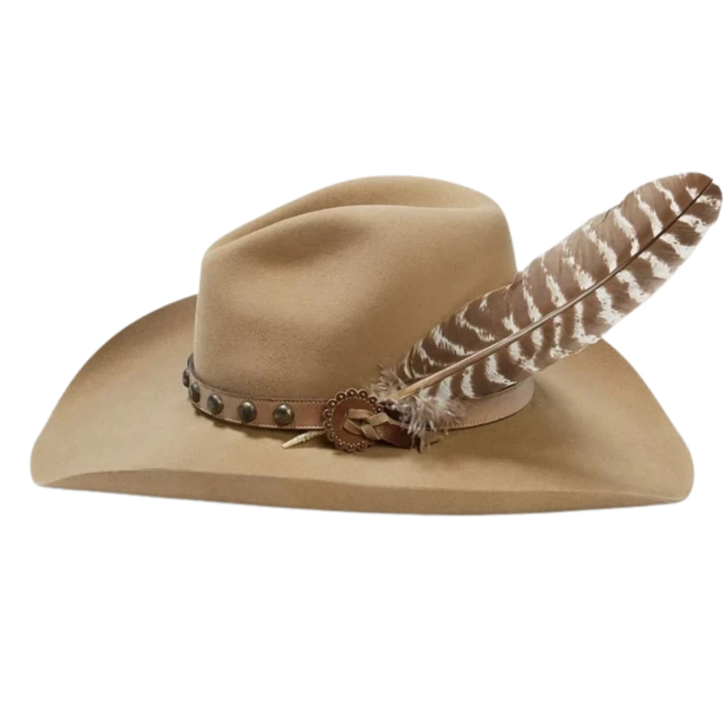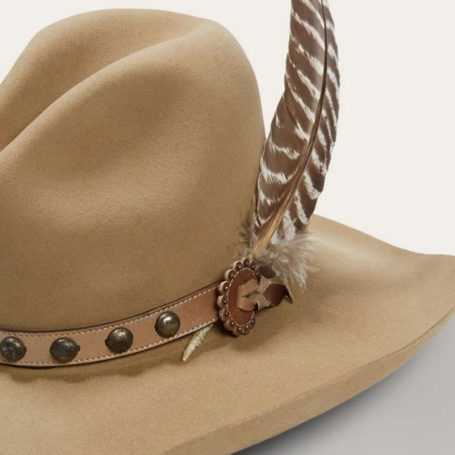 - Brass Tone Studded Leather Hatband