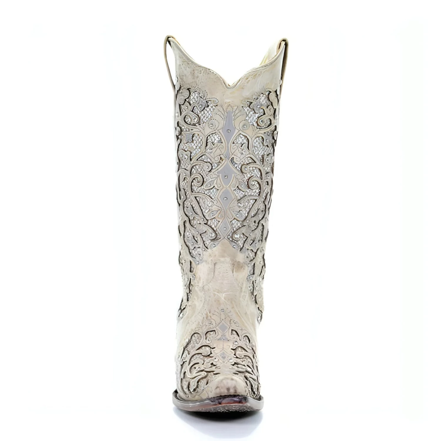 Glitzy, stunning, and elegant. Beautiful white boot with glitter applications perfect for that special day.