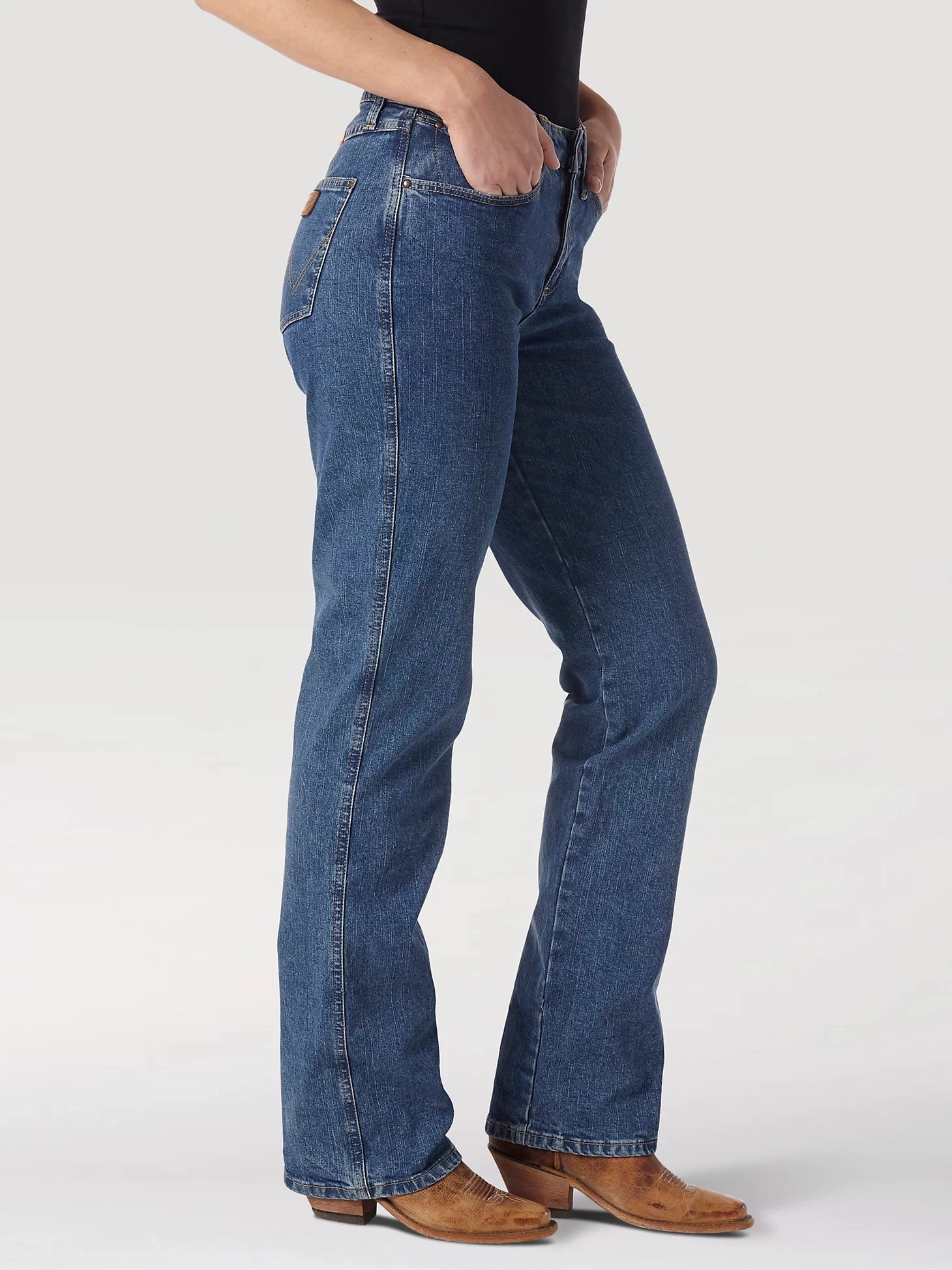 When it comes to finding a dependable jean, cowgirls all across the country know that Wrangler® jeans for women are as dependable as they come. Our women’s Cowboy Cut® stretch jeans pay tribute to the original 14MWZ women’s Western bootcut jeans you know but with a slightly lower rise that sits at the natural waistline as well as a hint of stretch to help you take on whatever the day brings. Our women’s stretch jeans wouldn’t be complete without all the authentic Wrangler® details you love, such as the leather patch, five-pocket styling, rive trim, and tapered leg.